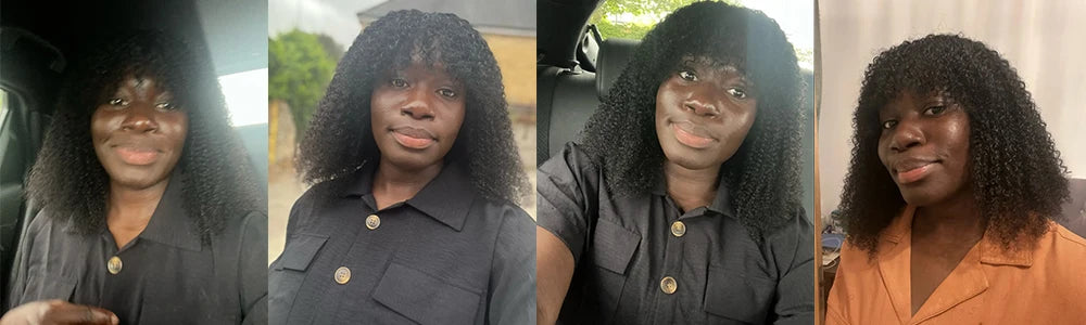 Hair Style: Afro Kinky Curly Full Machine Wigs With Bang