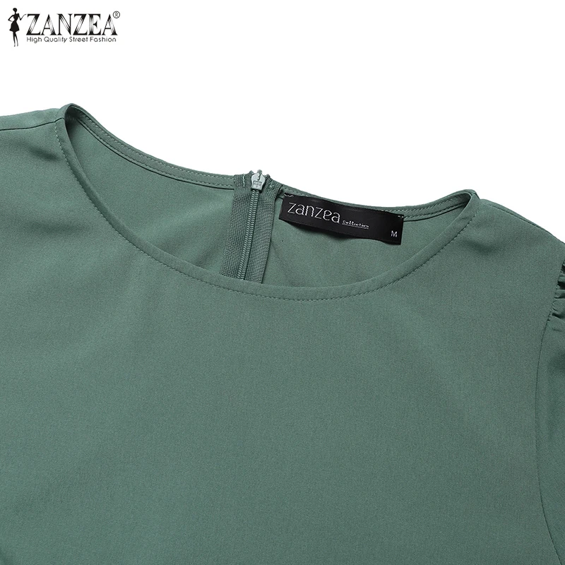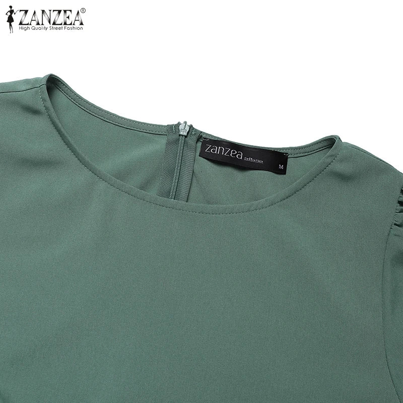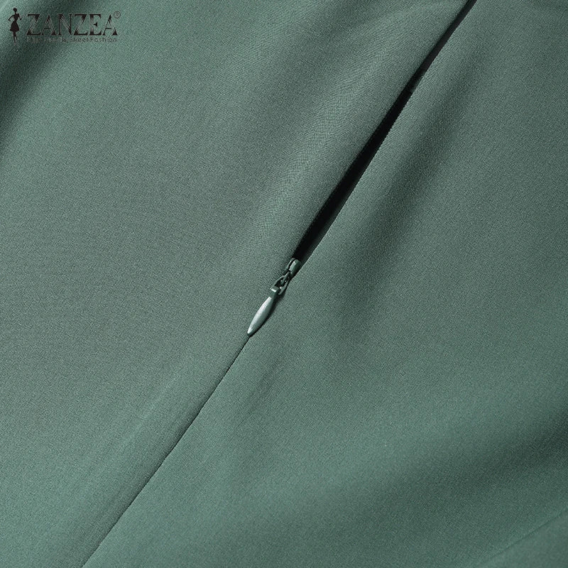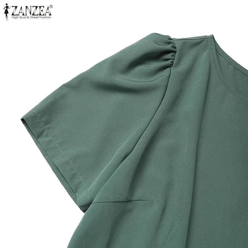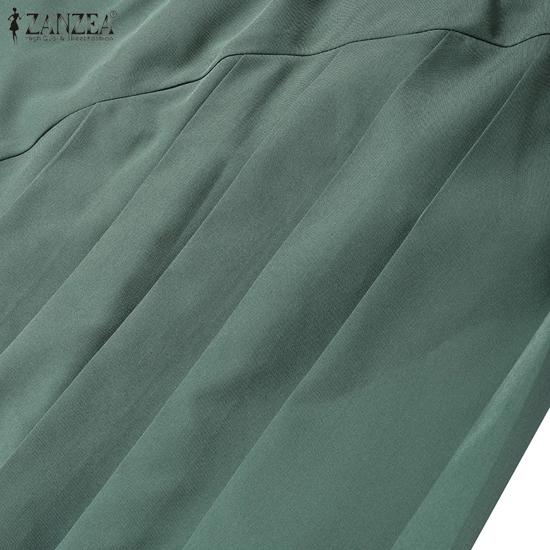 Elegant Pleated Dress ZANZEA Summer O Neck Short Sleeve Sundress Women Stylish Casual Work Party Vestidos Solid Knee Length Robe