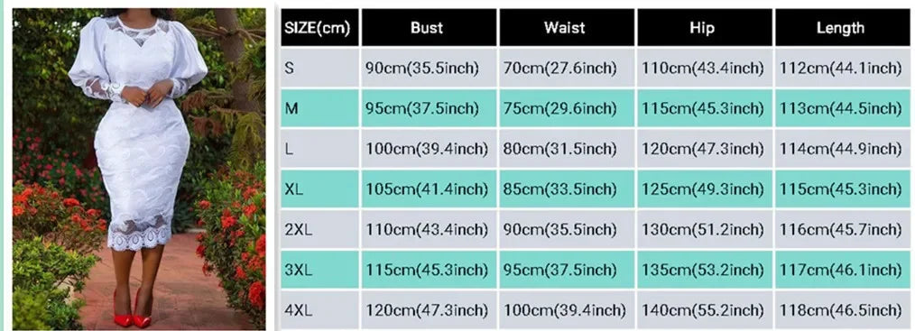 Elegant Women White Lace Dress Puff Sleeve Embroidery Pencil Dress Large Size 4XL Ladies Wedding Birthday Dinner Evening Clothes