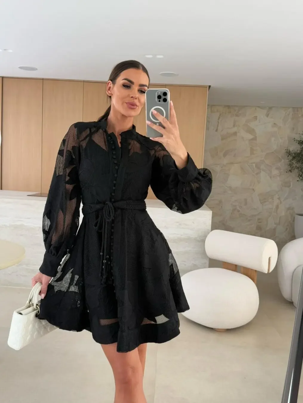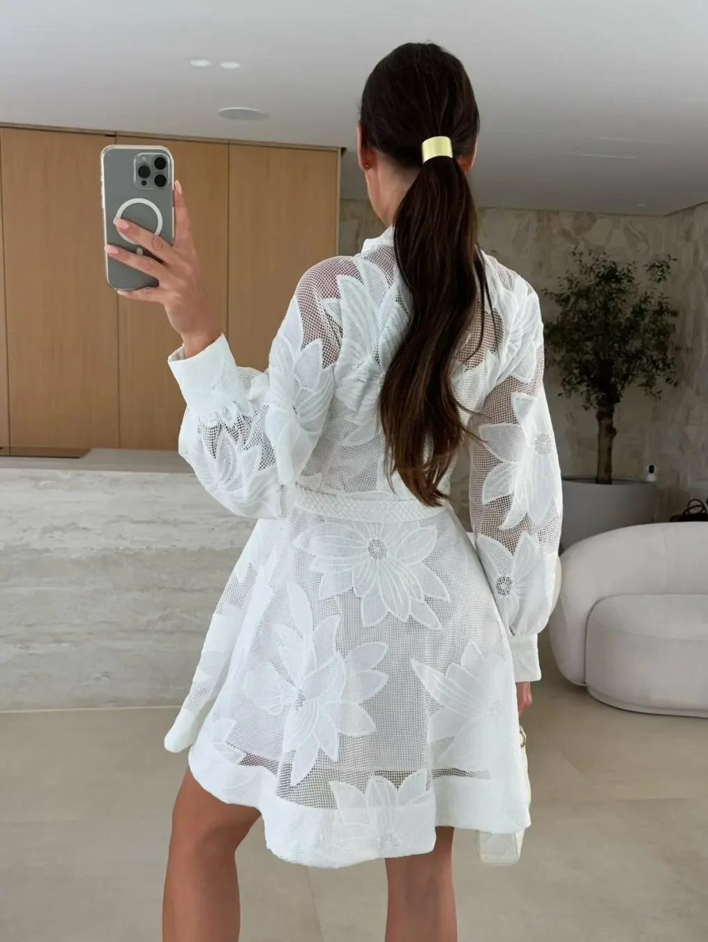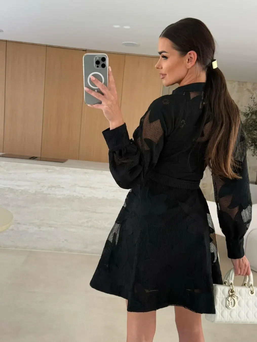 Fashionable Ins Embroidered Lace Dress Cross-Border Independent Station Floral Midi Skirt Polyester Fiber Full Sleeve