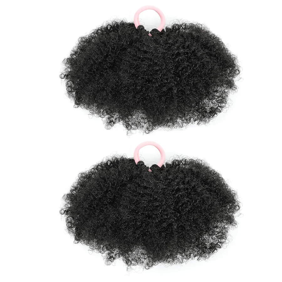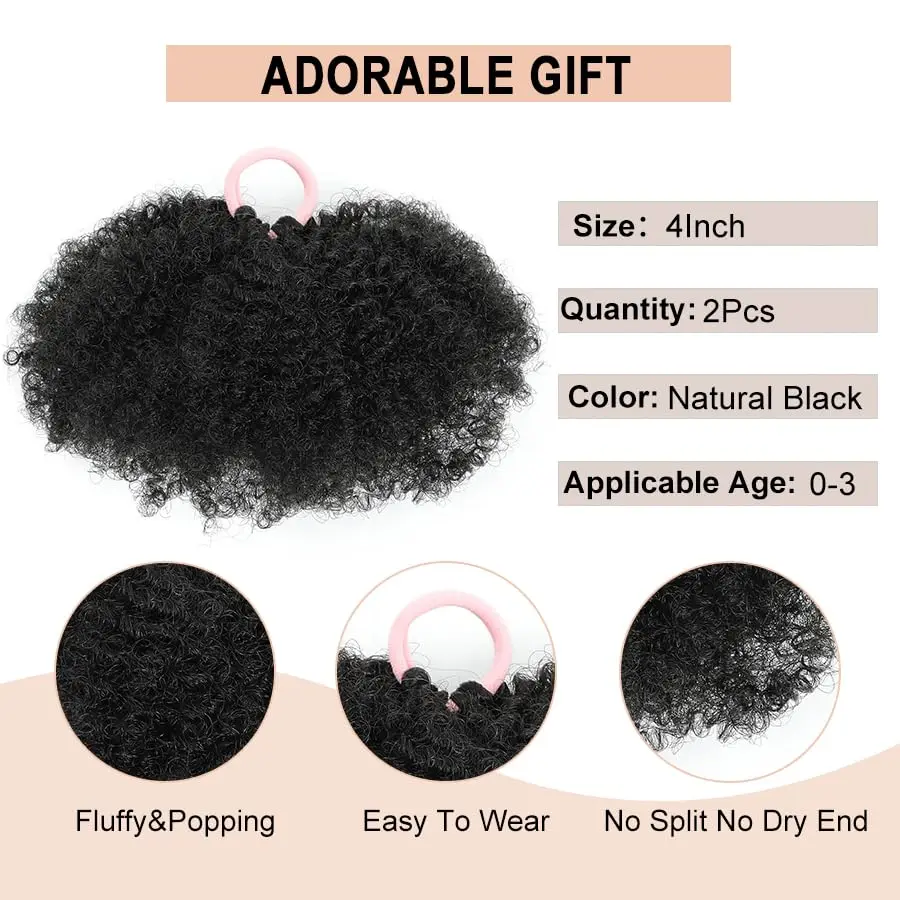 Kids Puff Ponytail Extensions 2Pcs Synthetic Small Afro Kinky Curly Hair Bun For Little Girls Comfortable Lightweight Hairpieces