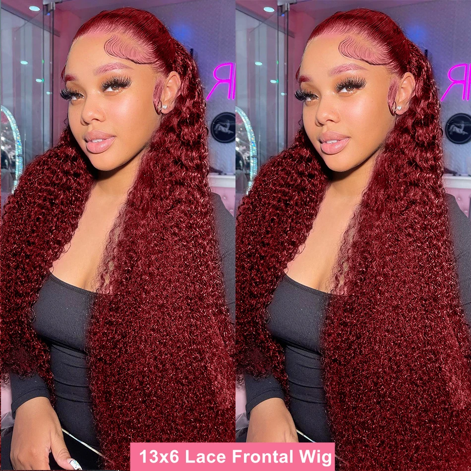 Mossily Burgundy Curly 13x6 HD Lace Frontal Wigs Human Hair 13x5 Wet And Wavy 99J Red Colored Deep Wave Wig For Women 30 36 Inch