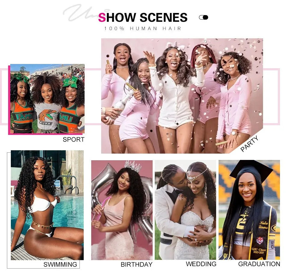 UNice Hair Drawstring Cap Kinky Straight V Part Wig & U Part Wig EasiContour 100% Human Hair Wigs No Glue Small Head Friendly