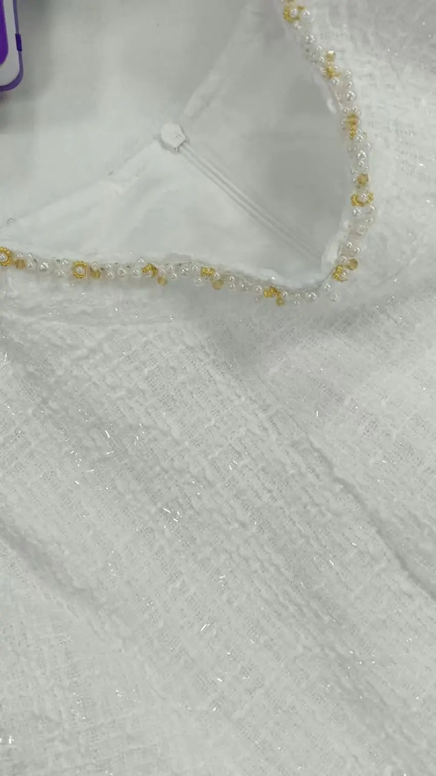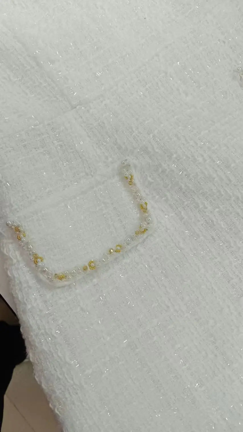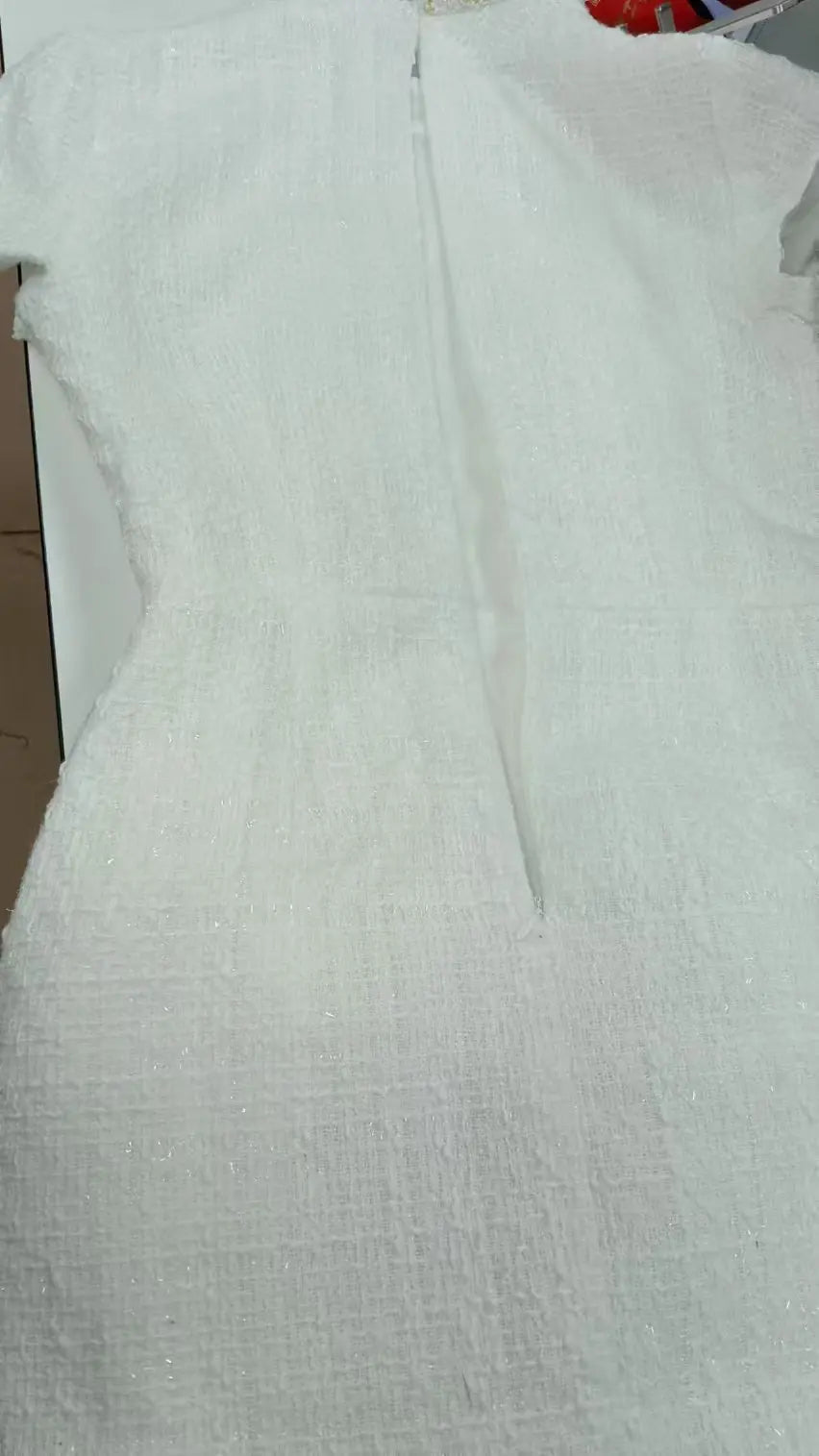 White Shoulder Pad Short Sleeve Party Dress Women's Elegant Tweed A-line O-neck Patchwork Luxury Black Evening Dresses Birthday