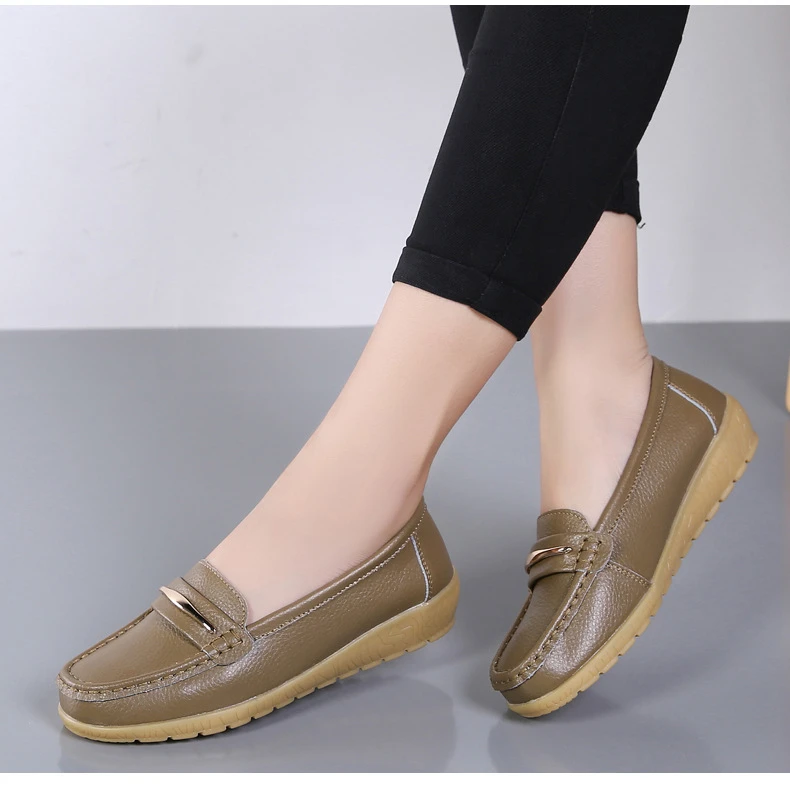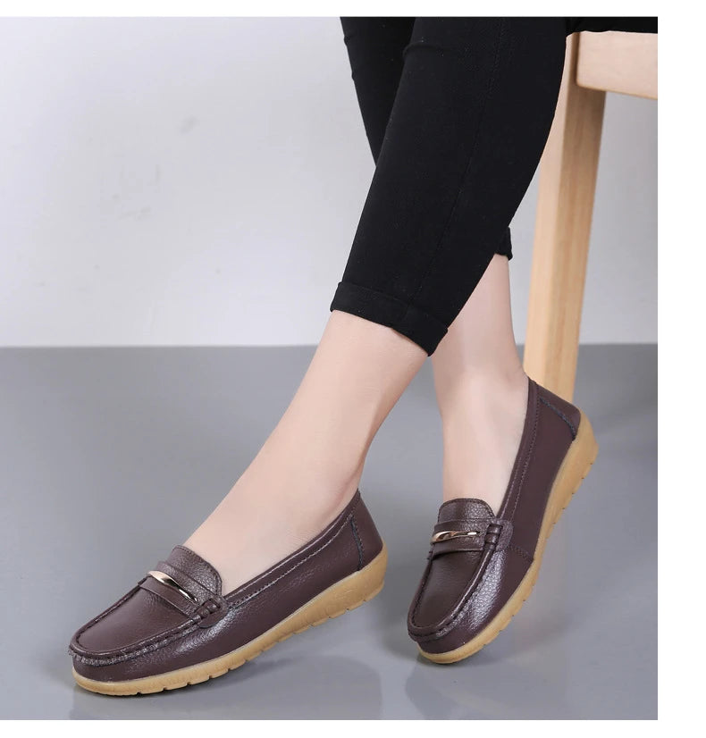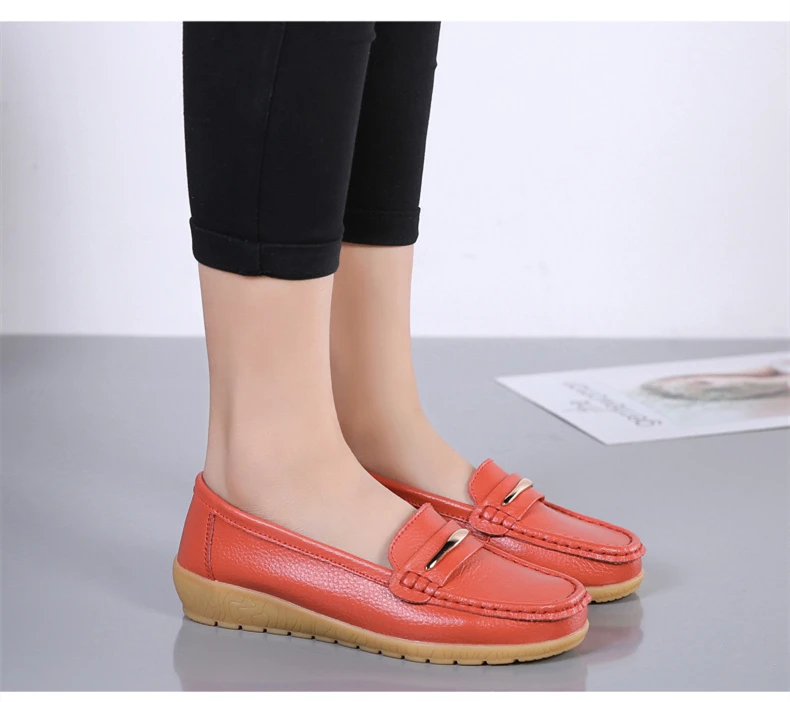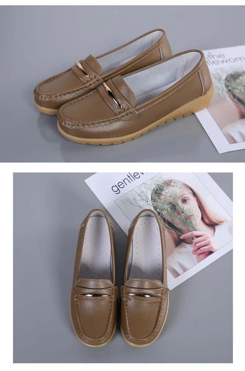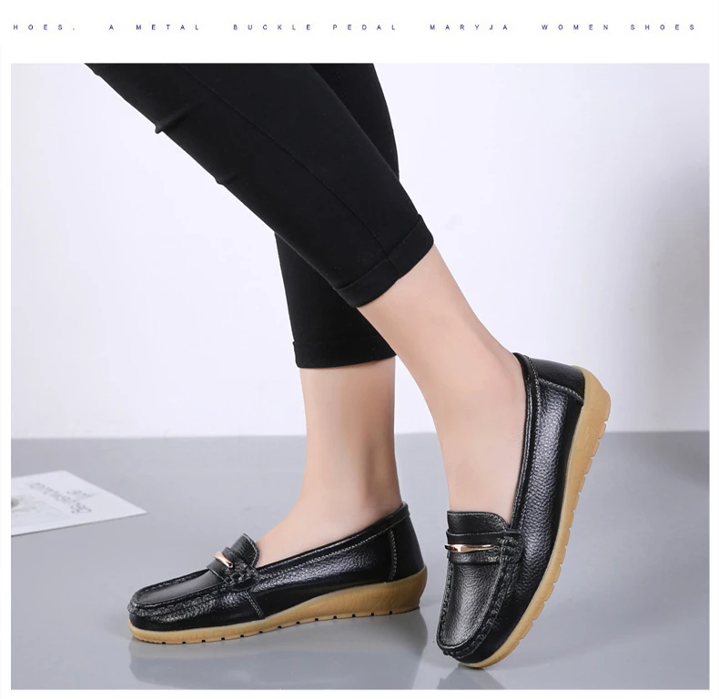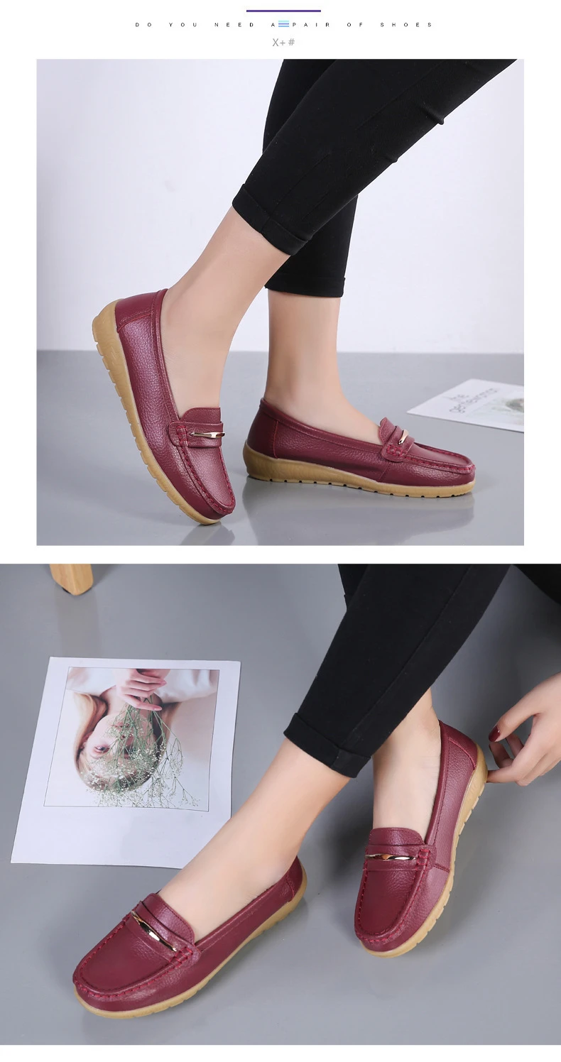 WOIZGIC Women's Mother Ladies Woman Female Genuine Leather Shoes Flats Loafers Platform Bling Slip On Moccasins Plus Size 43 44