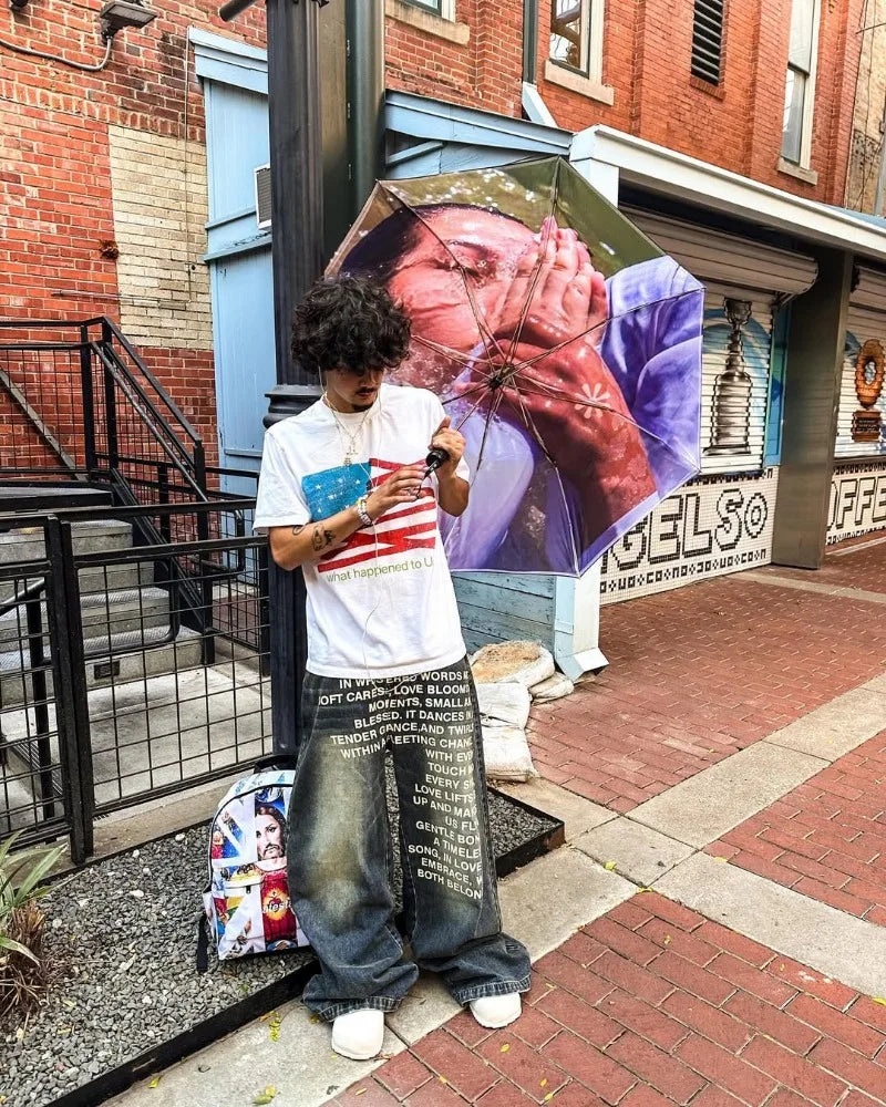 Y2K men Jeans vintage American Pattern letter jeans streetwear gothic Harajuku Hip Hop men women Fashion Casual wide leg jeans